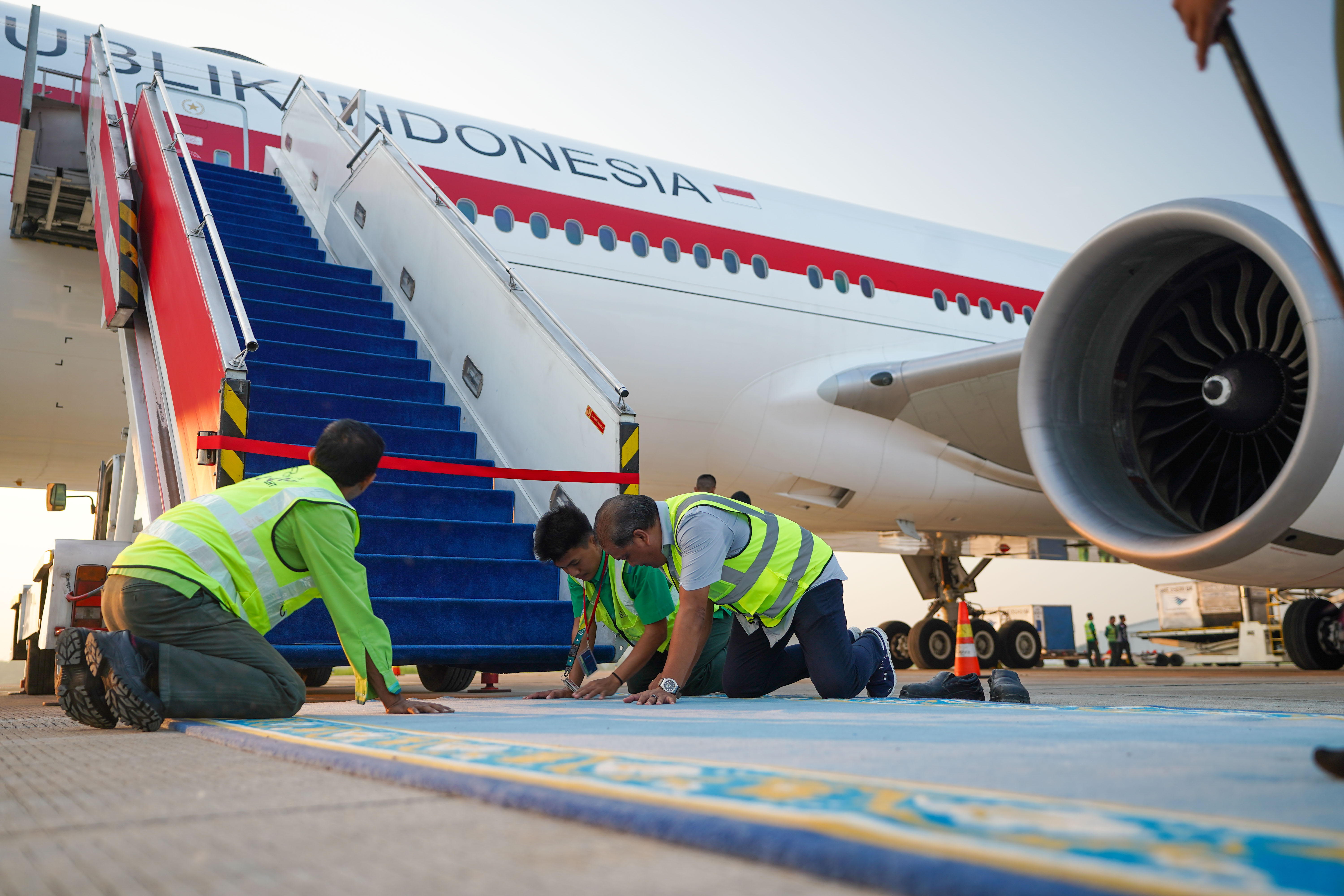 During the President’s departure process, which took place on 29 March 2026 through Halim Perdanakusuma Airport, PT Gapura Angkasa provided VVIP services by deploying all the necessary Ground Support Equipment (GSE) required for handling the presidential aircraft. In addition, the arrangement of the blue carpet and the readiness of other supporting equipment were carried out to ensure the smoothness of all ground operations.
